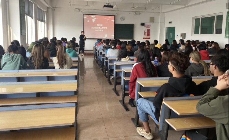 2020年10月10日上午9:00,在1505教室,艺术系党支部书记李玉明为全体新生开展了入学教育讲座。她从学院的发展历史和校训、大学生的目标、信仰、思维方式、做人做事等方面为新生进行了讲述和引导。最后,还向大家介绍了北戴河的旅游资源。一个小时的入学教育,点燃了新生对学院、对北戴河的热爱之情,激发了同学们对未来校园生活的美好憧憬。