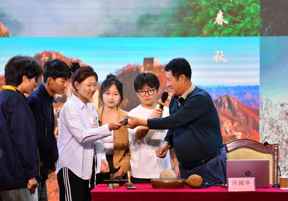 宣讲会上,许国华结合自身多年保护长城的经历,以生动的语言系统阐述了长城的历史文化价值、保护修缮技术及文物发掘背后的故事。他通过展示五件珍贵文物,与现场学生展开互动交流,让师生近距离感受长城承载的民族精神。通过触摸文物和聆听讲解,师生们深刻体会长城这一中华民族精神的象征和全人类共同的文化遗产的魅力。