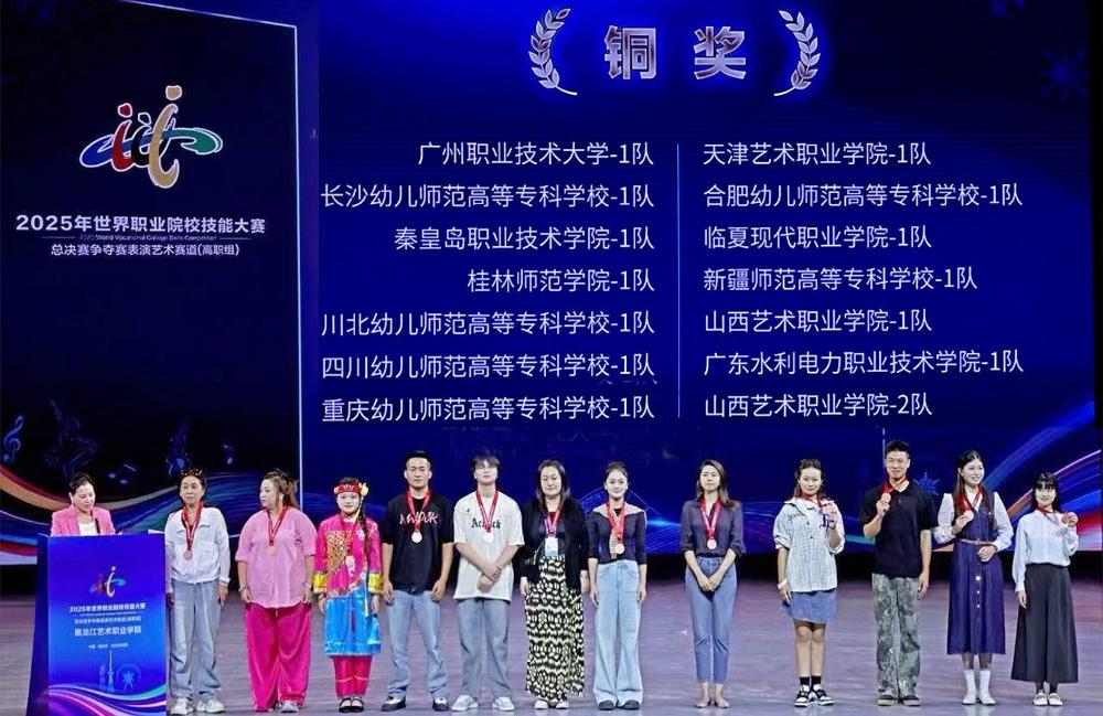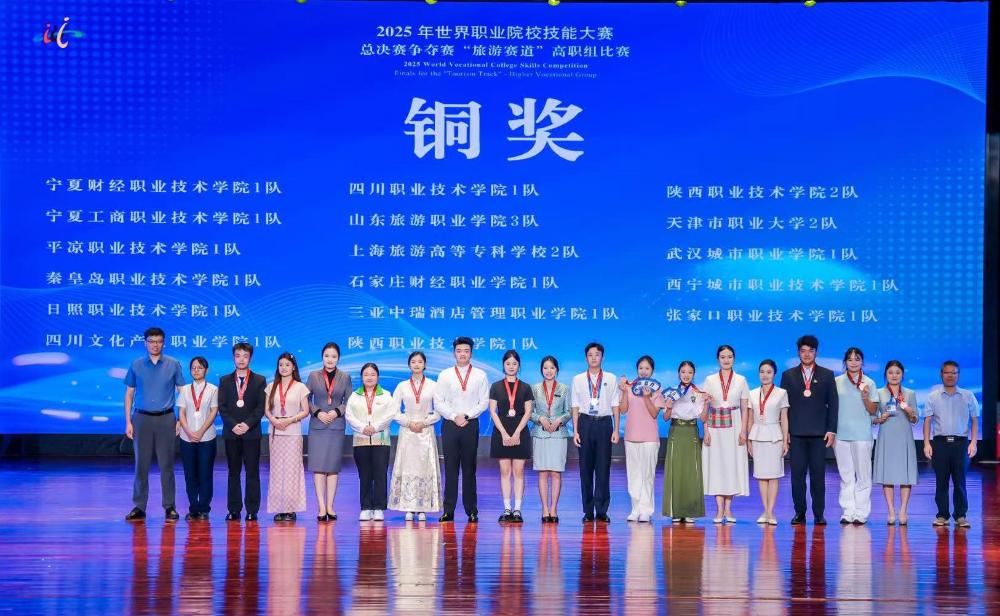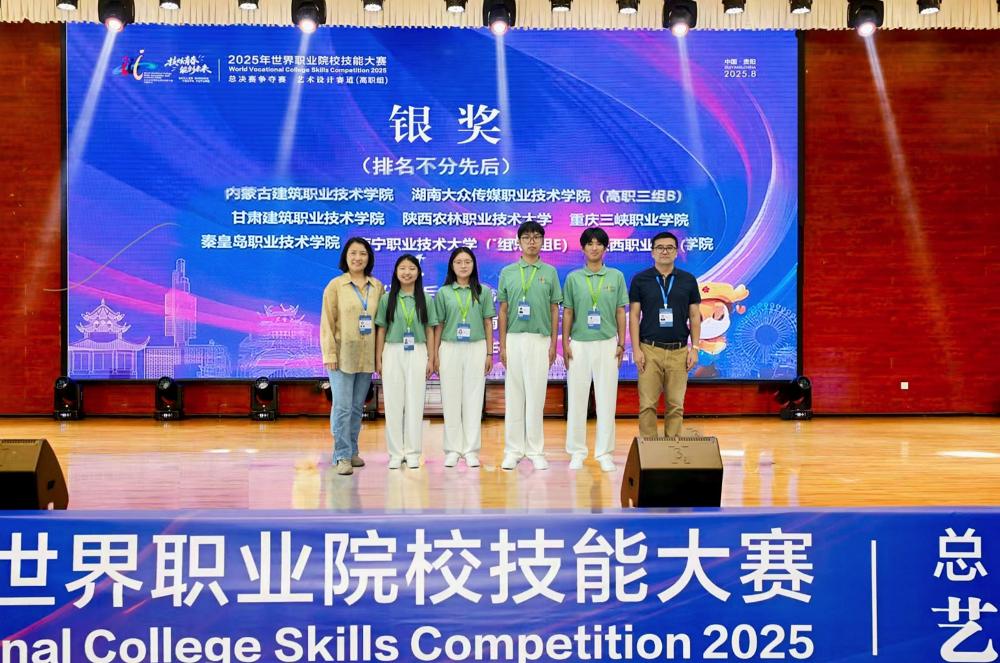 【新闻中心讯】8月31日,2025年世界职业院校技能大赛总决赛争夺赛落下帷幕。经过激烈角逐,学院建筑与设计系尚建恒、苏一俣、葛乐欣、张宥希四名同学在“艺术设计赛道”高职组比赛中获得银奖,旅游与康养系李宝莹、刘卓远、苏博雅、马思洁四位同学在“旅游赛道”高职组比赛中获得铜奖,艺术系陈蕊、陈建友、班智慧三位同学在“表演艺术赛道”高职组比赛中获得铜奖,商贸系王子淇、温林浩、杨智博、张佳鑫四位同学在“物流与供应链赛道”高职组比赛中获得铜奖。