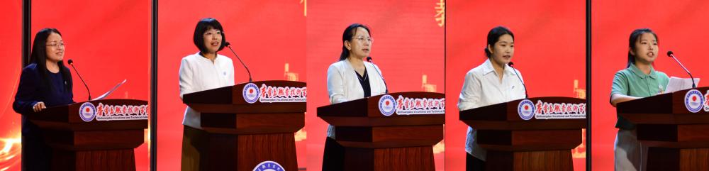 外语系教师杨红英、马克思主义学院副院长于兰、机电工程系主任马薇和经济系教师任镜璇分别代表师德标兵、优秀教师、教学团队、新入职教师在会上进行了发言,学生代表建筑与设计系葛乐欣同学表达了对老师们的感谢与祝福。