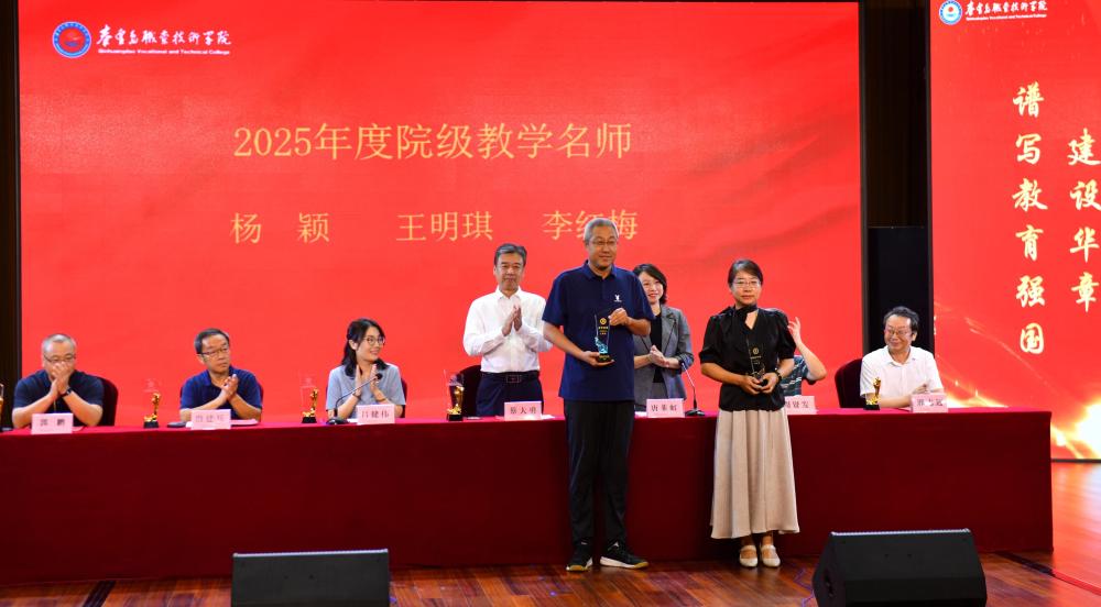 党委委员、副院长唐韭虹宣读表彰师德标兵、优秀教师、优秀教育工作者、教学名师和国赛获奖团队的决定。