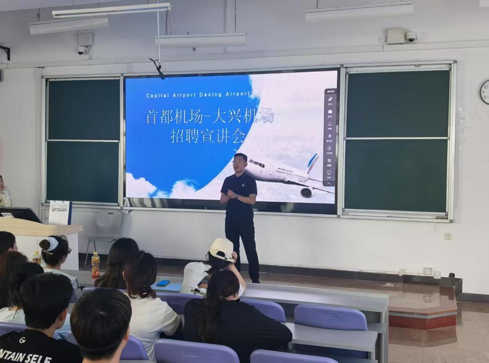【新闻中心讯】5月27日,外语系2023级学生岗位实习和2025届毕业生双选会在2号教学楼举行。首都机场集团、顺丰物流华北总部、雄安新区雄勤机关服务中心等17家优质企业参加双选会,为外语系学子提供300余个实习就业岗位,活动由系党总支副书记赵丽丽主持。