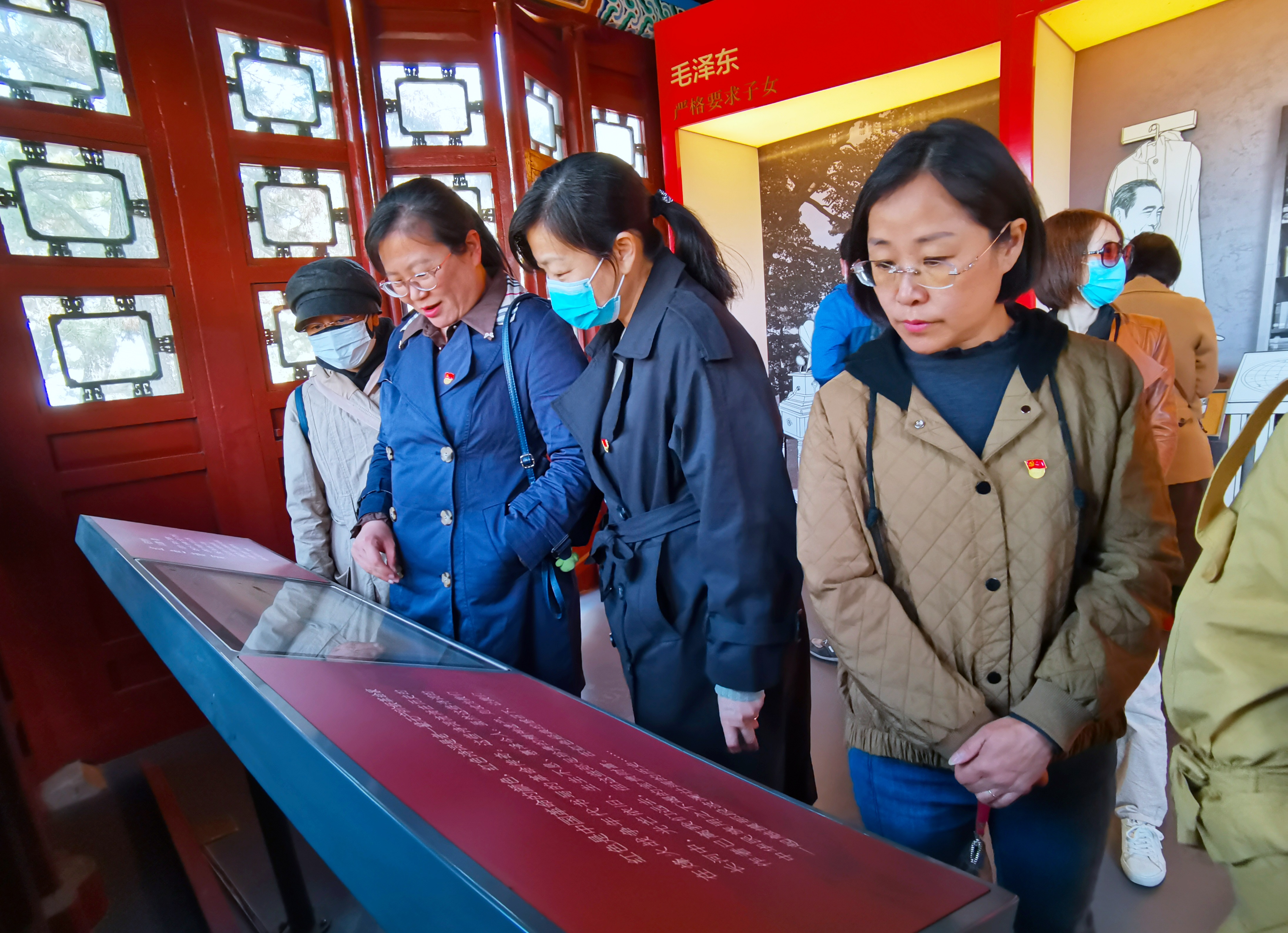 活动中,党员老师们在讲解员的带领下参观了朗月阁和清风亭等地的“新中国红色文化展”和廉政文化展,通过文图展牌了解了周恩来、陈云等老一辈革命家的好家风、廉洁风范以及在北戴河工作期间发生的清廉故事。在毛主席雕像和《浪淘沙·北戴河》诗词碑前,党员老师们重温入党誓词。