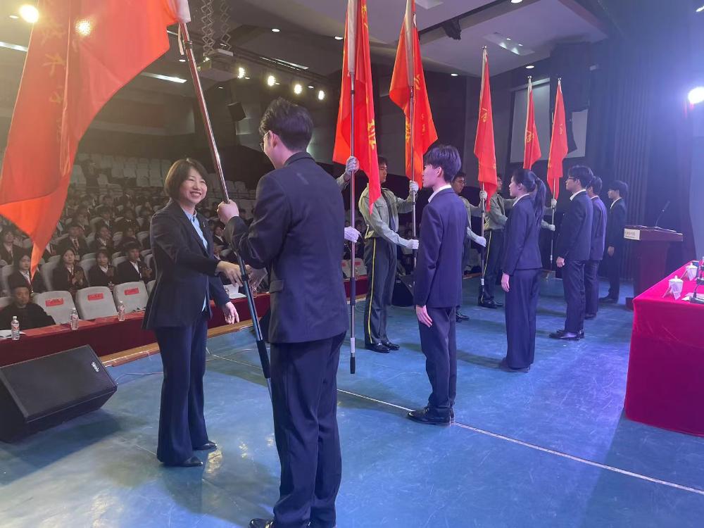 开班式上,唐韭虹为2024年“青年马克思主义者培养工程”大学生骨干培训班授旗,学员代表李晨嘉作表态发言。
