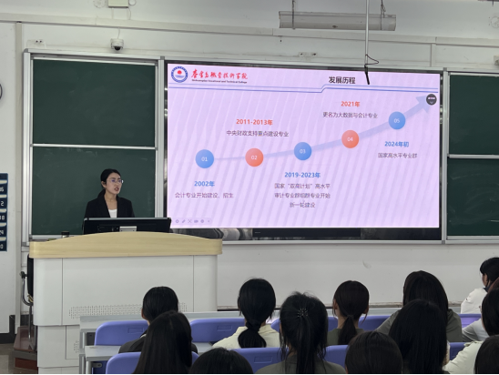 专业带头人表示,大学是人生成长的重要阶段,希望新生们能以此次专业介绍为起点,尽快适应大学的学习节奏与生活模式,树立明确的学习目标与职业规划;既要扎实掌握专业知识与技能,也要注重综合素质的提升,积极参与各类实践活动,培养创新思维与团队协作能力;在遇到困难时保持积极心态,主动向老师、学长学姐请教,在经济系的大家庭中收获知识、成长与友谊,未来成为符合行业需求、能为社会发展贡献力量的高技能人才。
