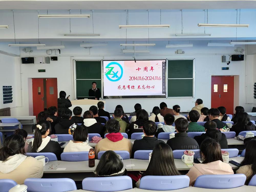 2024年11月6日,马克思主义学院知行社召开成立十周年庆祝大会。马克思主义学院院长李国亮、副院长于兰,教研室主任杨颖、戴昕哲,教师代表王石磊和知行社指导教师出席活动,河北经贸大学马克思主义学院党委副书记、知行社原指导教师刘志峰教授应邀线上参加活动。大会由知行社现任指导教师李立主持。