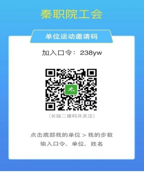 扫描下方二维码加入微信小程序“运动步数”,点击进入,输入口令加入所属部门(请认真准确的填写个人信息,填写有误会导致您的成绩录入失败影响最终成绩)。