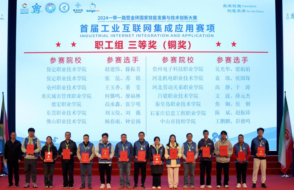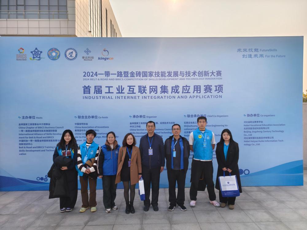 发布时间:2024-11-2511月23日,2024“一带一路”暨金砖国家技能发展与技术创新大赛之首届工业互联网集成应用赛项决赛在石家庄信息工程职业学院成功举办。信息工程系教师焦锏、侯俐组成的教师团队,闫佳曦、杜小宁、马亚楠、李梓航组成的学生团队代表学院参加了比赛。经过激烈的角逐,喜获全国职工组三等奖和学生高职组三等奖。